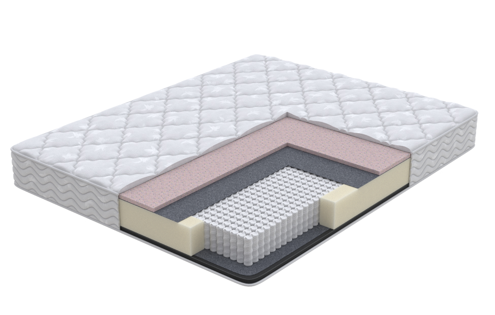 Двусторонний матрас, с высокой жесткостью с одной стороны и выше средней с другой. В основе матраса интеллектуальный блок из 1000 независимых пружин на спальное место. В составе комфортных слоев Эко ППУ и угольная пена, которая обладает антистатическим действием, препятствует появлению микроорганизмов. Чехол матраса выполнен из трикотажной ткани, простеганный на дополнительном слое Ортофом.
