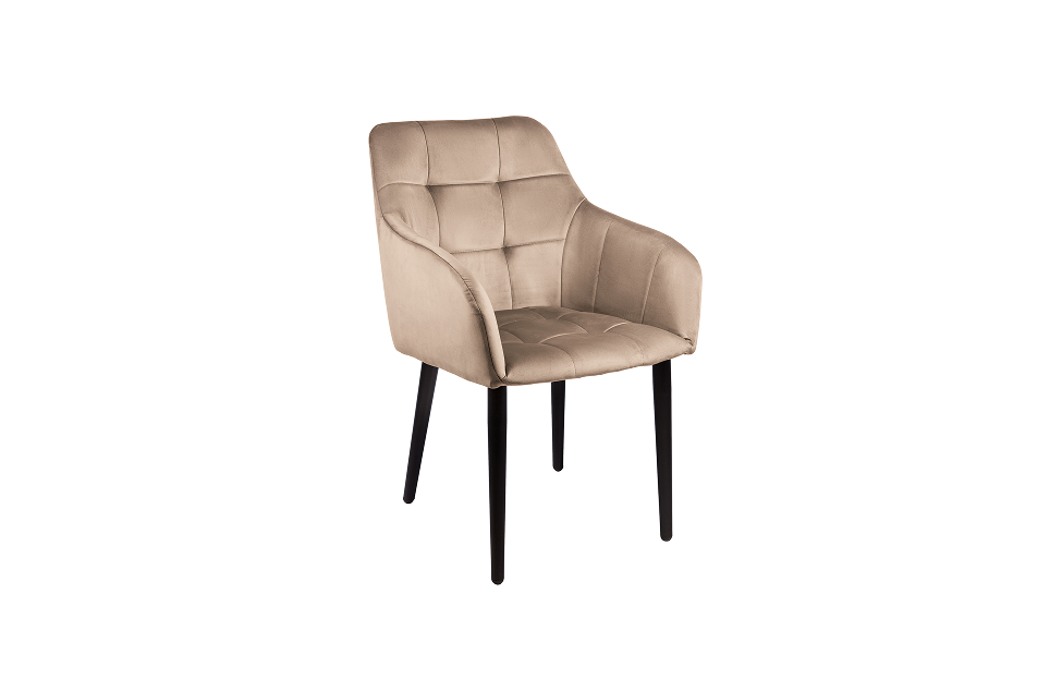 Стул-кресло Отэм прекрасно впишется в любой интерьер и комнату. Такой стул можно использовать как в качестве обеденного стула, так и в виде рабочего кресла к письменному столу. Обивка из велюра в актуальном бежевом оттенке прекрасно гармонирует с металлическими ножками черного цвета. Такие стулья украсят современные интерьеры, а также пространства в стиле эклектики.