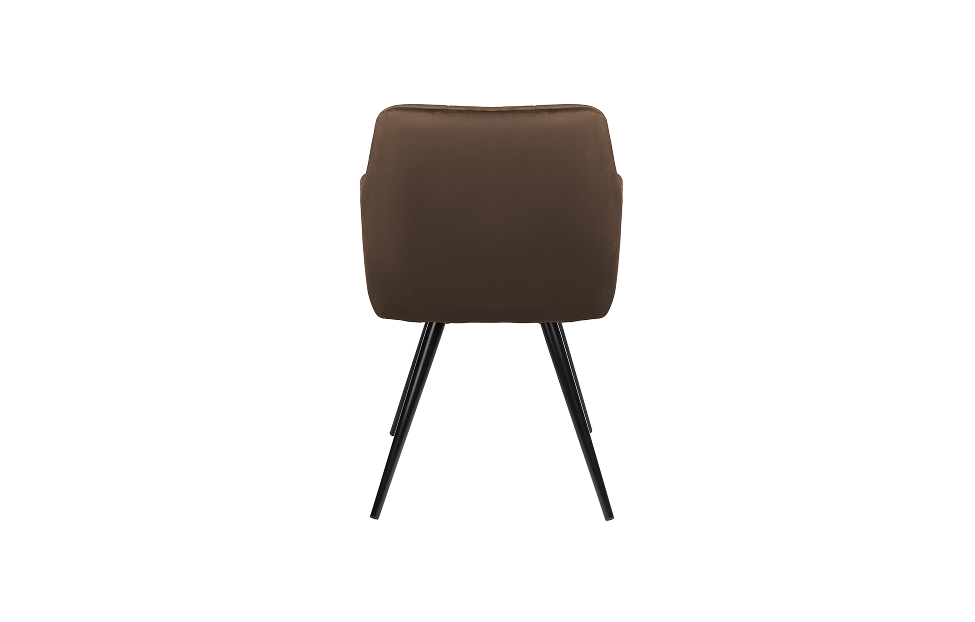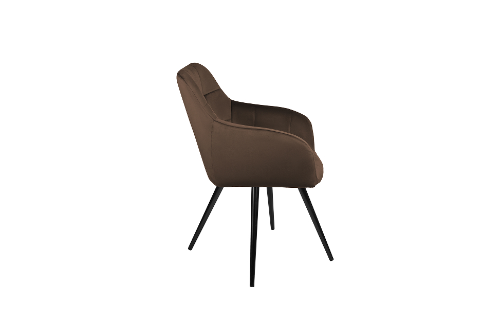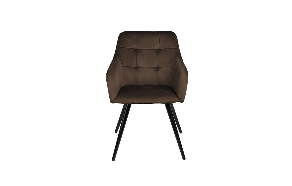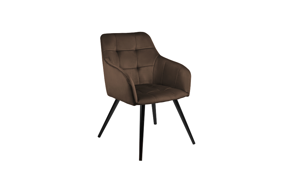 Стул-кресло Отэм с поворотным механизмом прекрасно впишется в любой интерьер и комнату. Такой стул можно использовать как в качестве обеденного стула, так и в виде рабочего кресла к письменному столу. Обивка из велюра в актуальном коричневом оттенке прекрасно гармонирует с металлическими ножками черного цвета. Такие стулья-кресла украсят современные интерьеры, а также пространства в стиле эклектики.