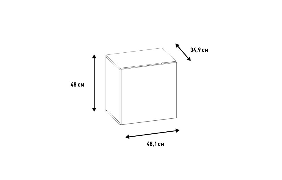 – описание: стиль современный, минимализм, размер 48x48.1x34.9 см, цвет швейцарский вяз, белый.