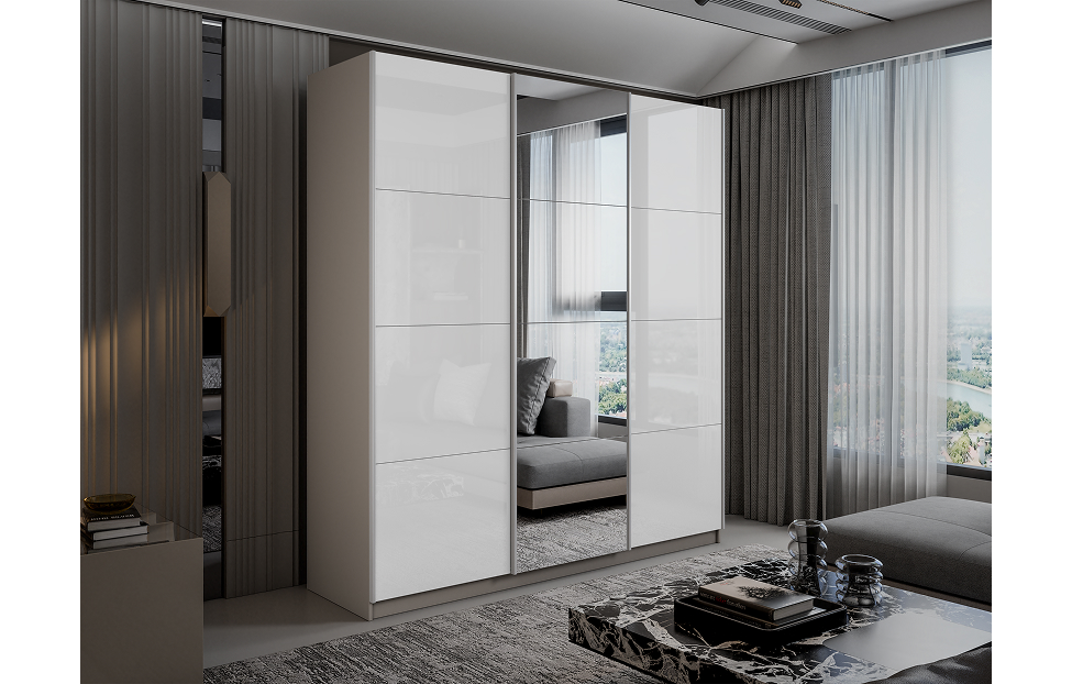 Цена на Шкаф-купе Lux 210х230х57 кашемир Белый глянец/Зеркало/Белый глянец от производителя , оплатите любым удобным для вас способом!