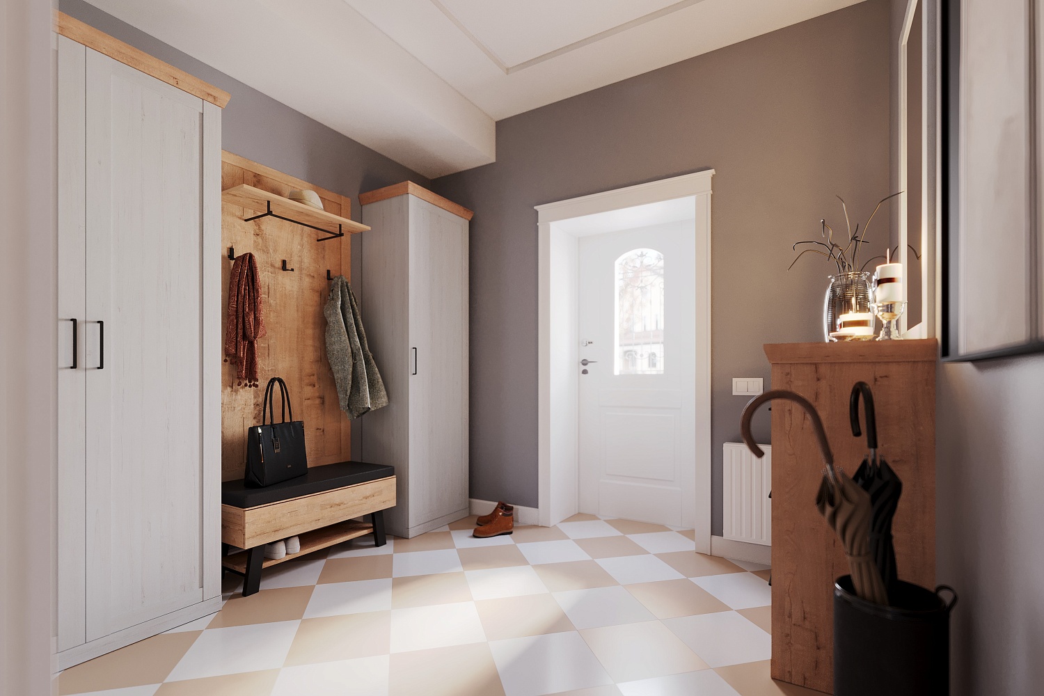 – описание: стиль современный, минимализм, назначение для прихожей, цвет дуб бунратти, блан шене.