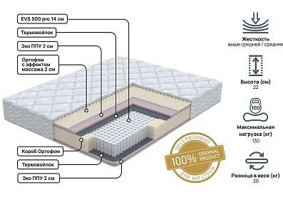 Матрас Status middle 180 х 200 Разная жесткость сторон с пружинным блоком