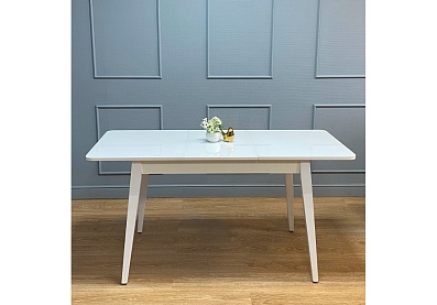 Стол обеденный Орпен прямоугольный опоры белые / столешница белый глянец ЛДСП Стекло