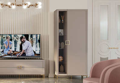 Шкаф Чарли с витриной (правый, со шпонированными полками) Серый агат