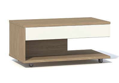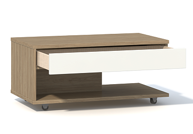 Журнальный стол Анри Д1W с выдвижным ящиком / Швейцарский вяз+Светлый лен Швейцарский вяз, Белый ЛДСП